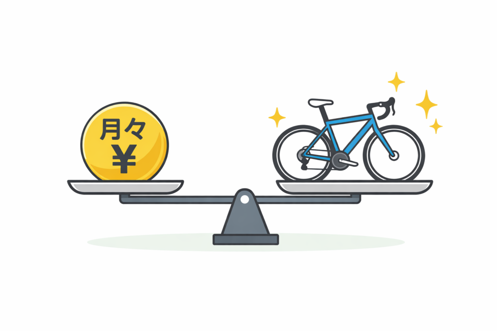 カーボンロードバイクに手が届きそうで、躊躇しがちな価格でも、月々にすると現実的になるケースは多いです。