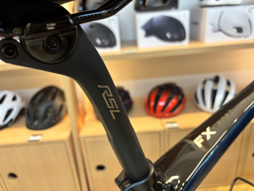 FX Sport 4の純正シートポストはアルミ製で路面からの微振動を伝えやすい構造、少しでも快適にということでTREKのハイエンドモデル、RSLカーボンシートポストを選択。