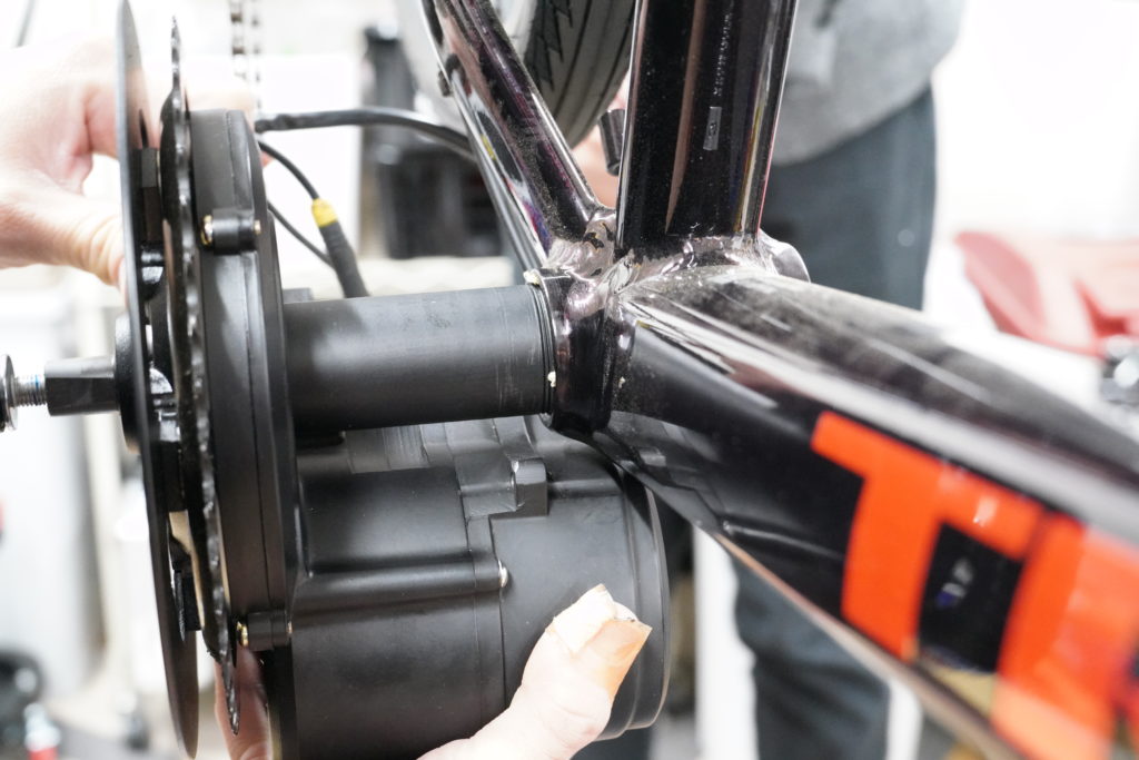 正面から見るとチェーンリングしか見えないので、ユニットのコンパクトさがわかると思います。