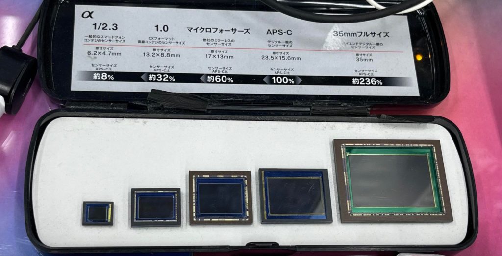 先日、某ビックカメラでカメラのセンサーの展示があり、初めて実物でのサイズ感を知りました。