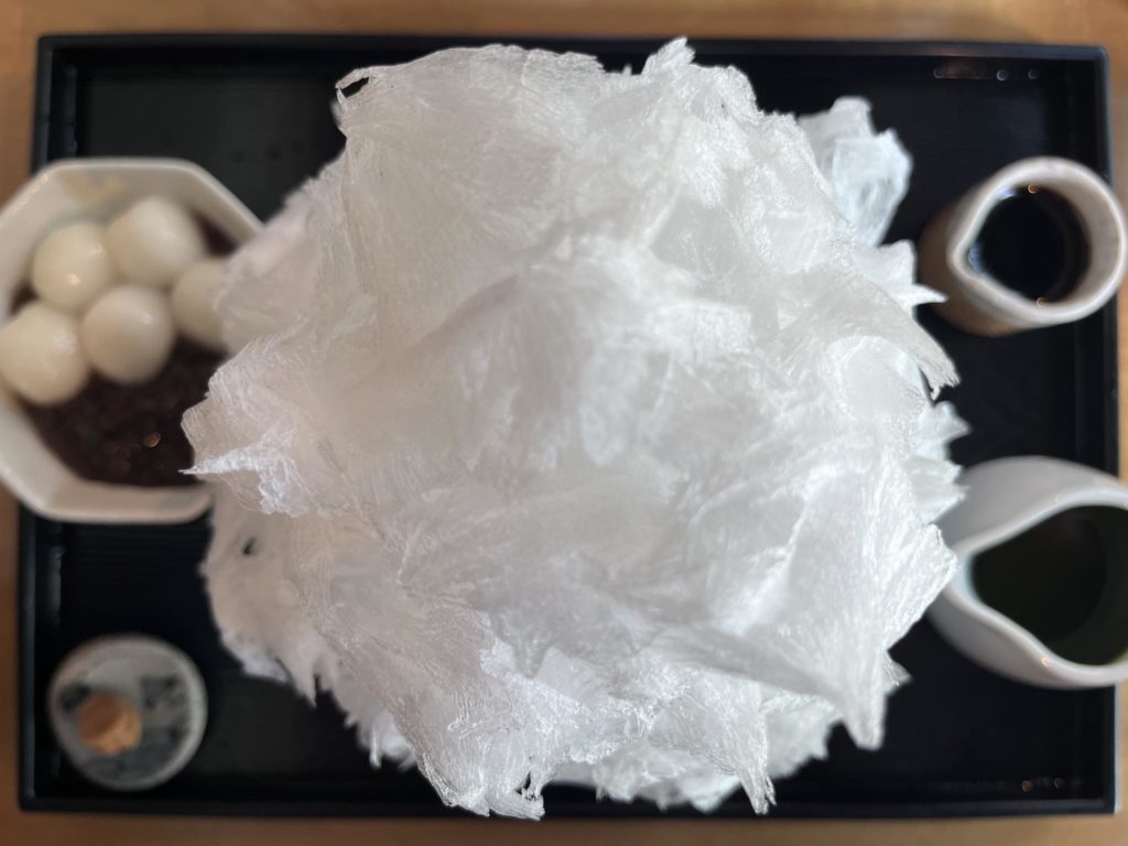 ふわふわの氷に、少しづつシロップをかけながら食べていきます♪