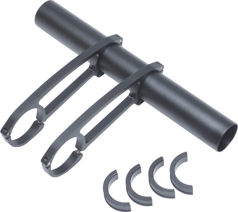 | 特徴 | ●ハンドルバーのスペースを拡張できるアクセサリーマウント。 ●高精度なCNC削り出しアーム2本で支えることで、最大800gまで積載可能 *荒れた路面やオフロードを走る時は最大500g。例えば、7インチスマホ1台、200ルーメンライト2個、大型サイクルコンピューター1個を積載しても600gです。 ●装着するハンドルは31.8mmと25.4mmの両方に対応。拡張バー側のパイプ径はハンドルバーで一般的な25.4mmなので、ライトやサイクルコンピューター等の取り付けがスムーズ。 対応ハンドル径:31.8/25.4mm |