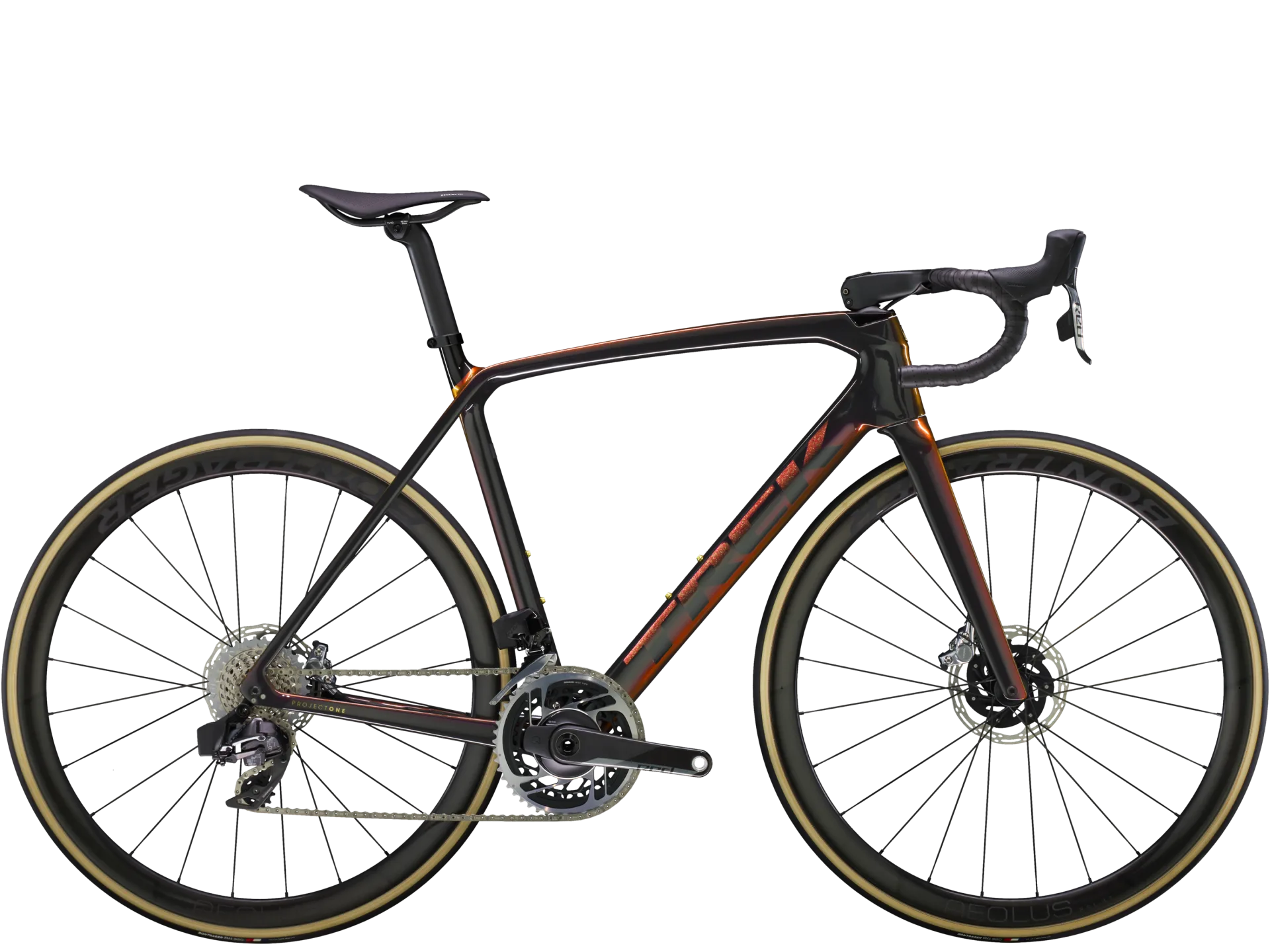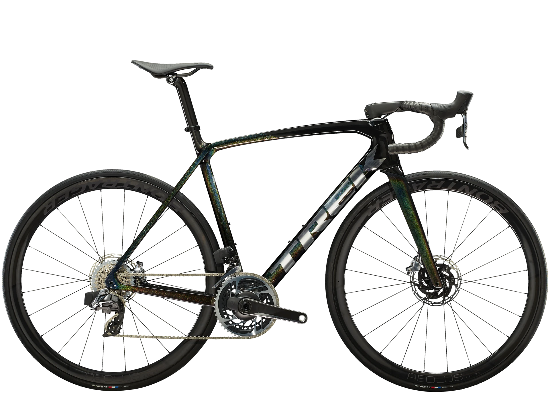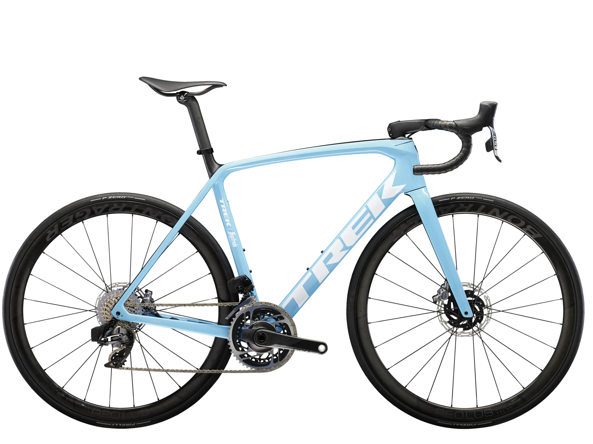 Trek-Segafredoレースチームの公式レプリカバイクとして、超軽量ホイールや最先端機能でパワーメーターの付いたSRAM RED AXS ワイヤレス電動ドライブトレインといった、チームと同じ最高級コンポーネントを使用しています。