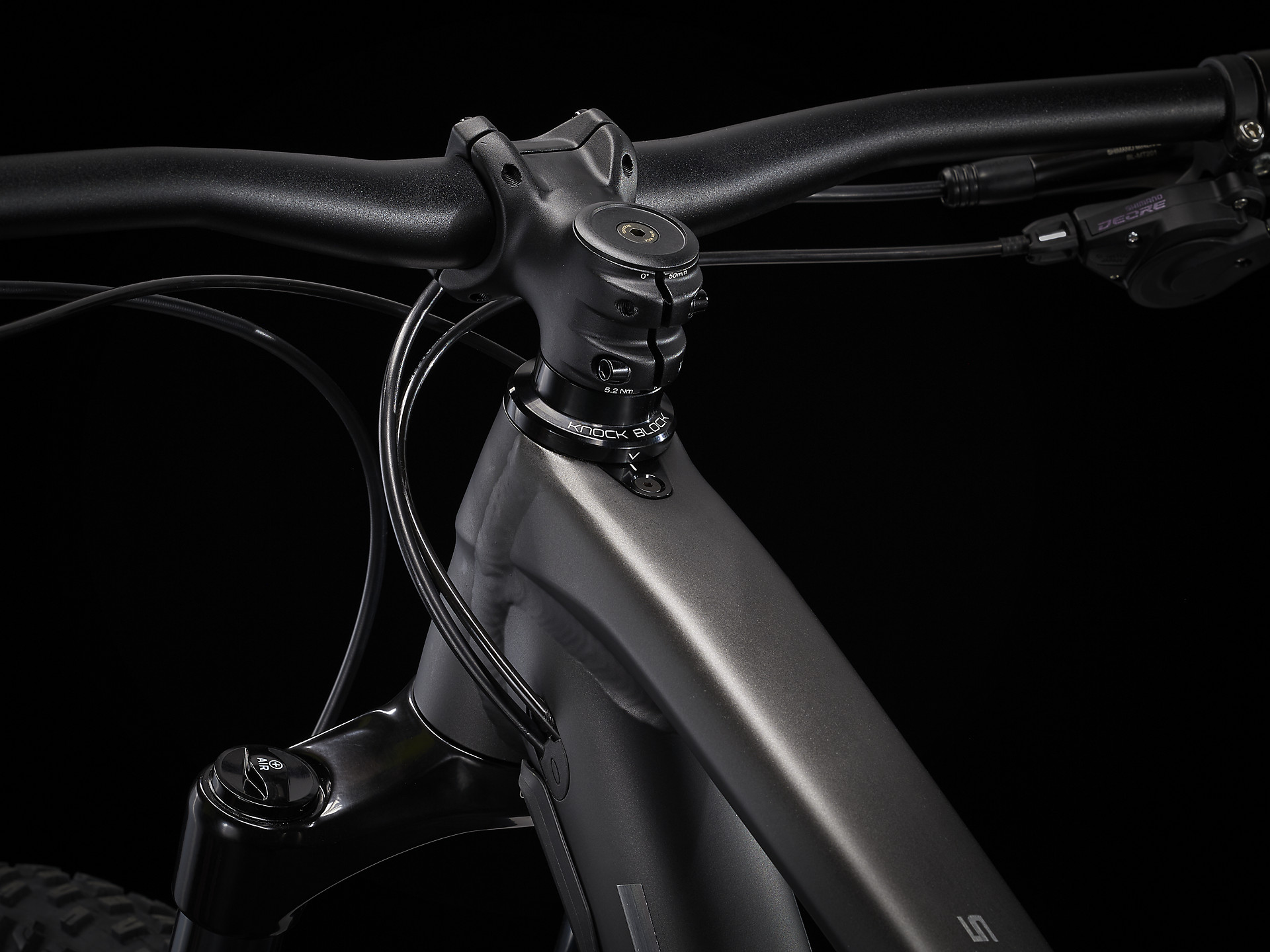 丈夫なアルミフレームは、ハンドルバーの切れ込みすぎを防ぐKnock Block ステアリングコラムストップを搭載。140mm トラベルのRockShox Recon Silver フォーク、130mm トラベルのX-Fusion Pro 2 リアショック、Shimano Deore 12速ドライブトレイン、ドロッパーポスト、油圧ディスクブレーキを搭載しています。