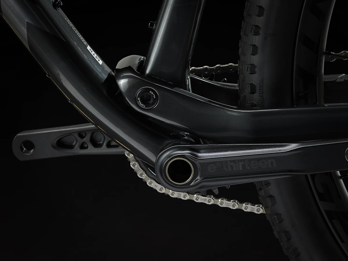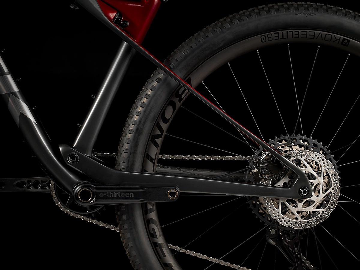 Shimano SLX/XT 1×12速ドライブトレインや、108tのリアハブが瞬時にパワーを伝達するボントレガー Kovee Elite 30 カーボンホイールも搭載しています。
